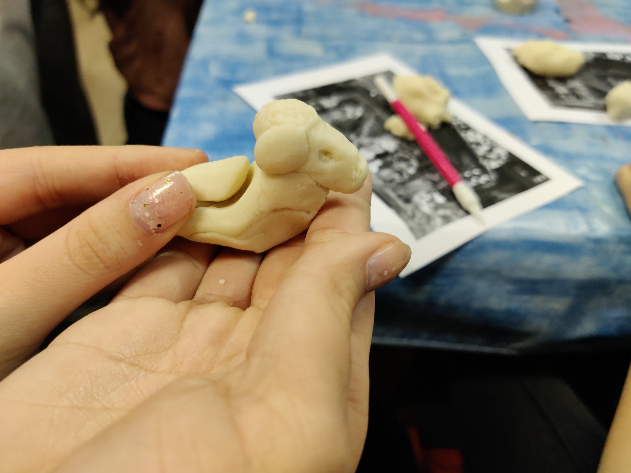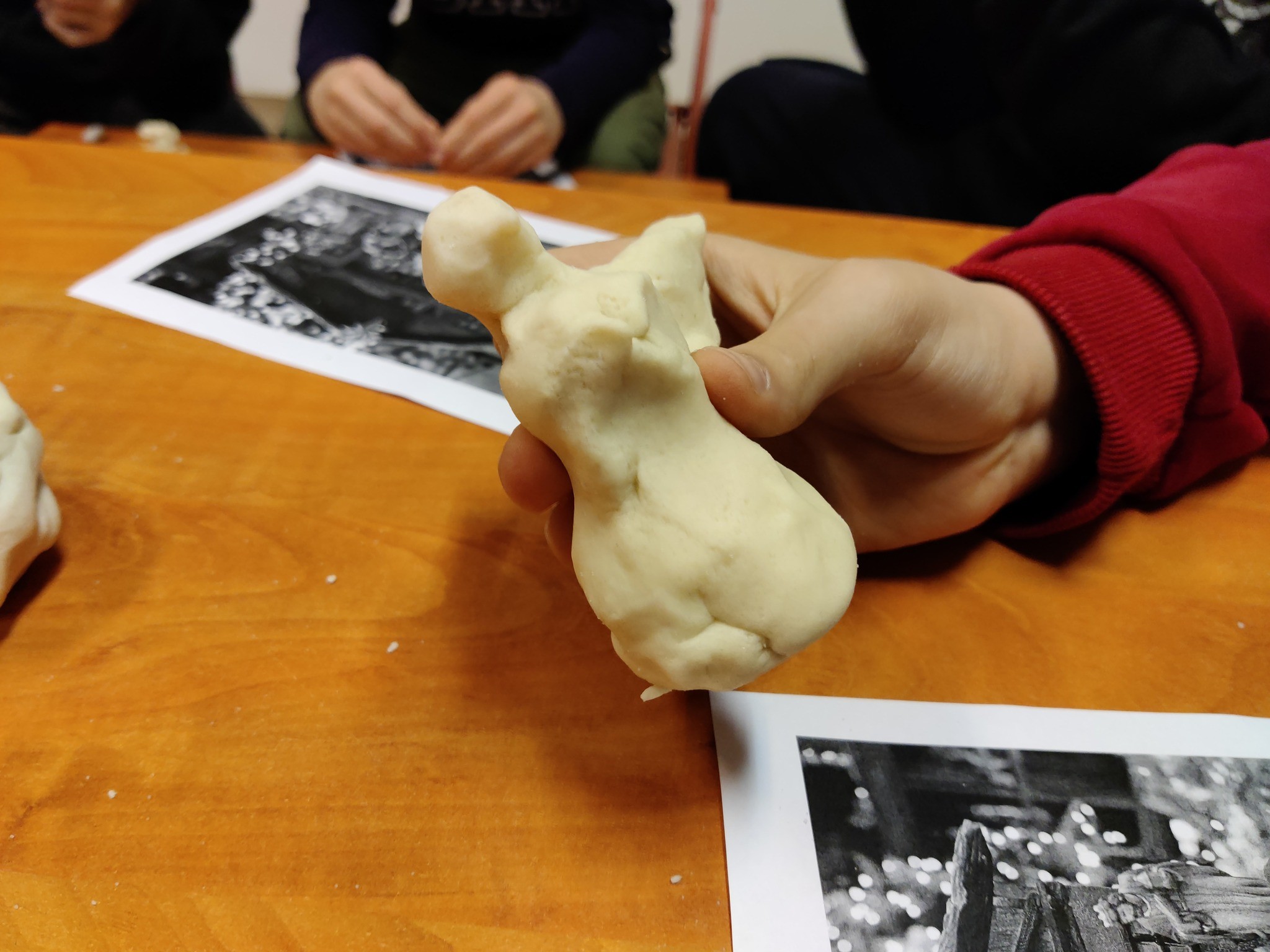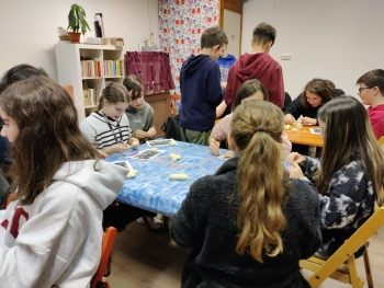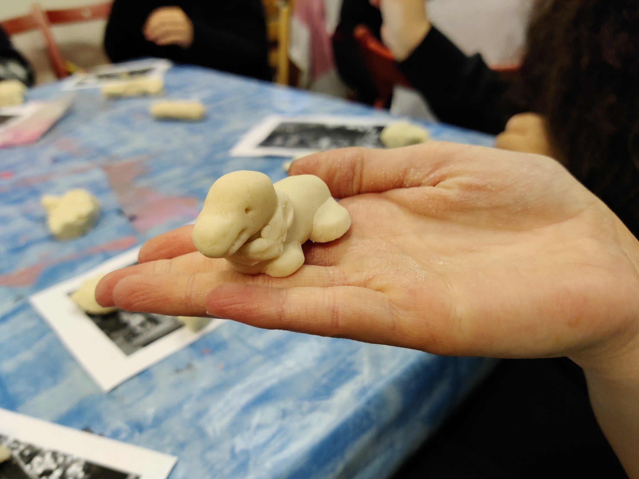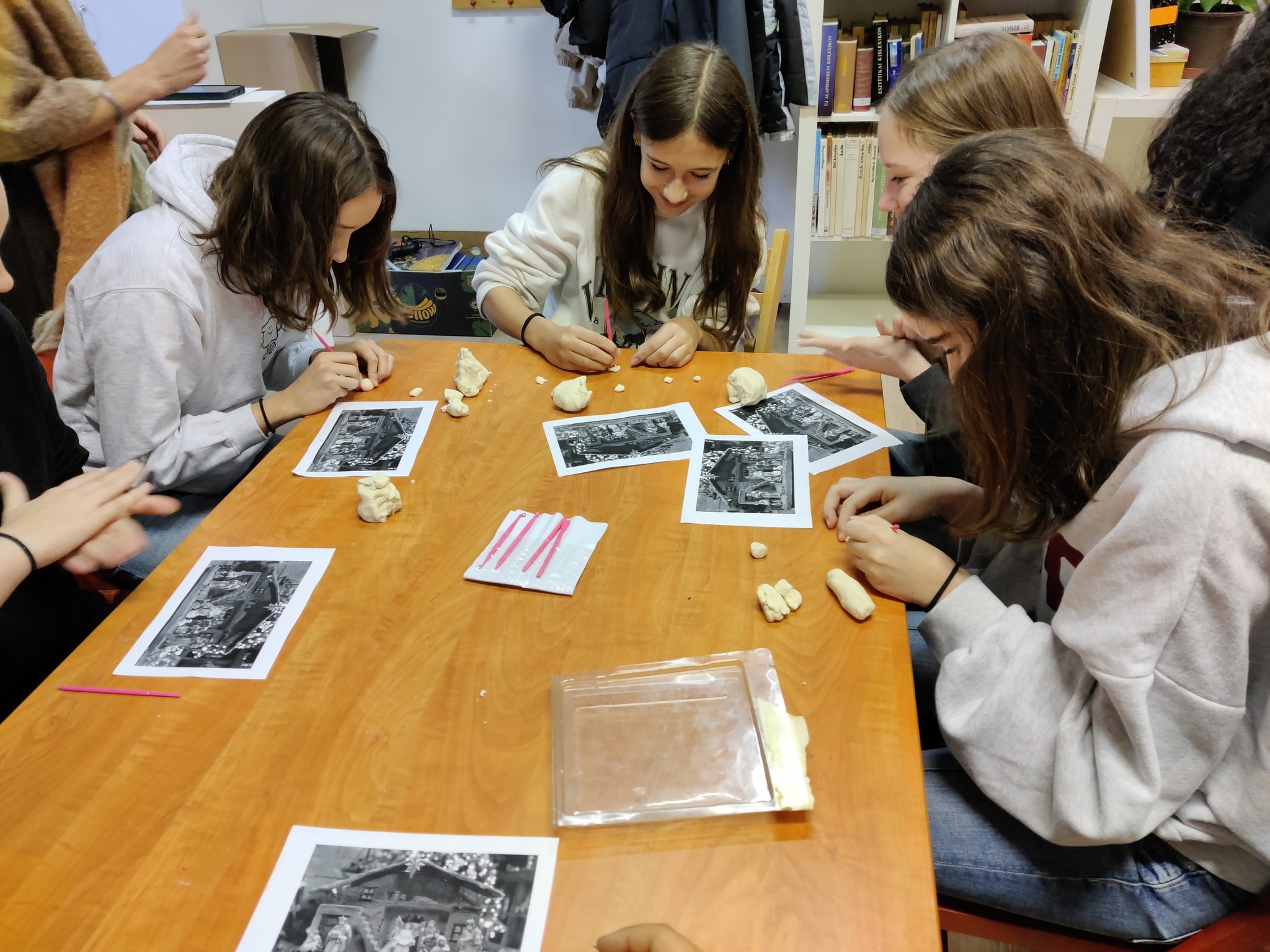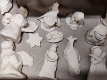 Emellett a gyerekek só-liszt gyurmából karácsonyi betlehemi figurákat készítettek.