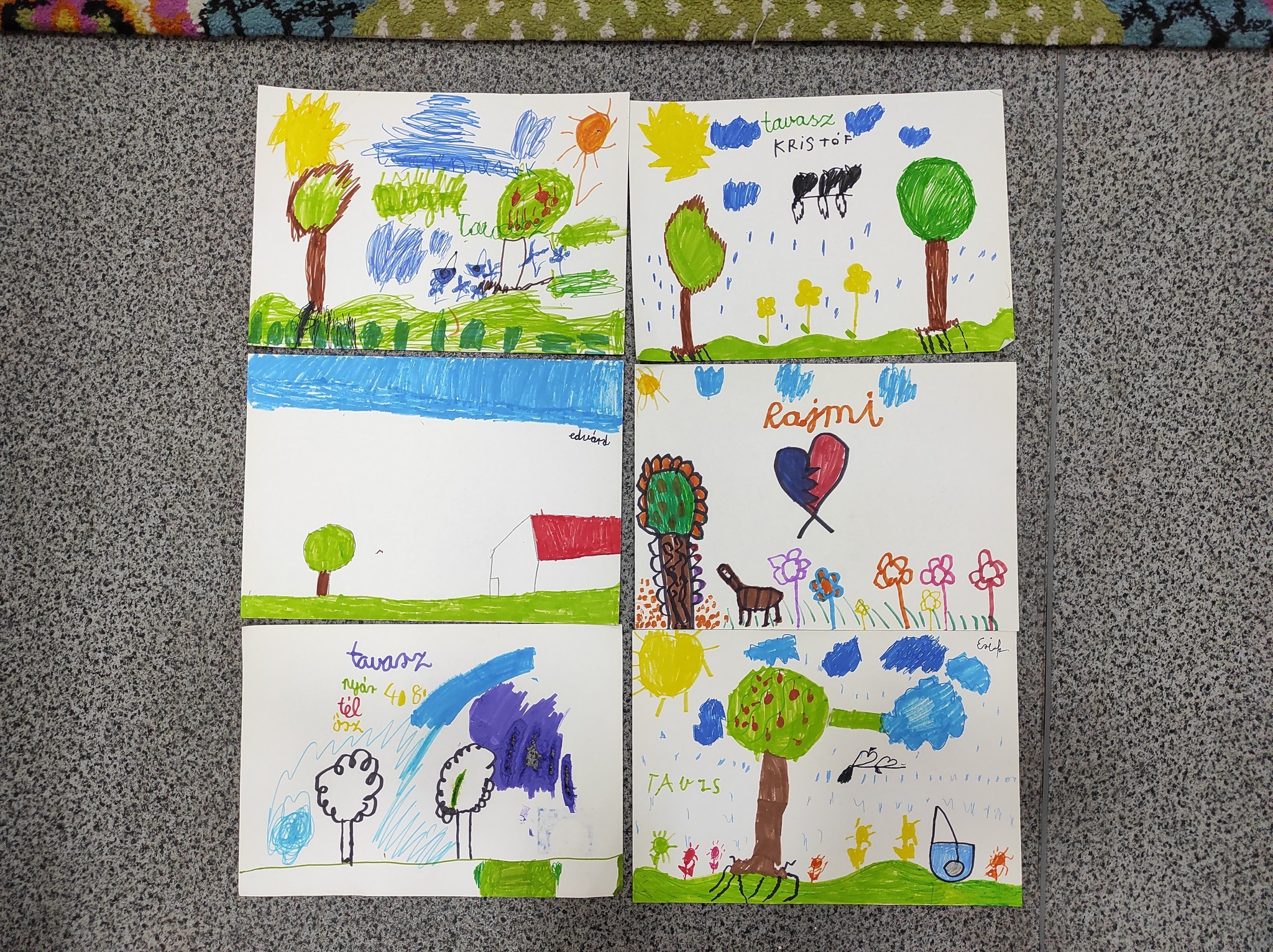 Közösen verseltünk, beszélgettünk a gyönyörű versekről, a csodás tavaszról és sok szép rajz is született a foglalkozás végén.
