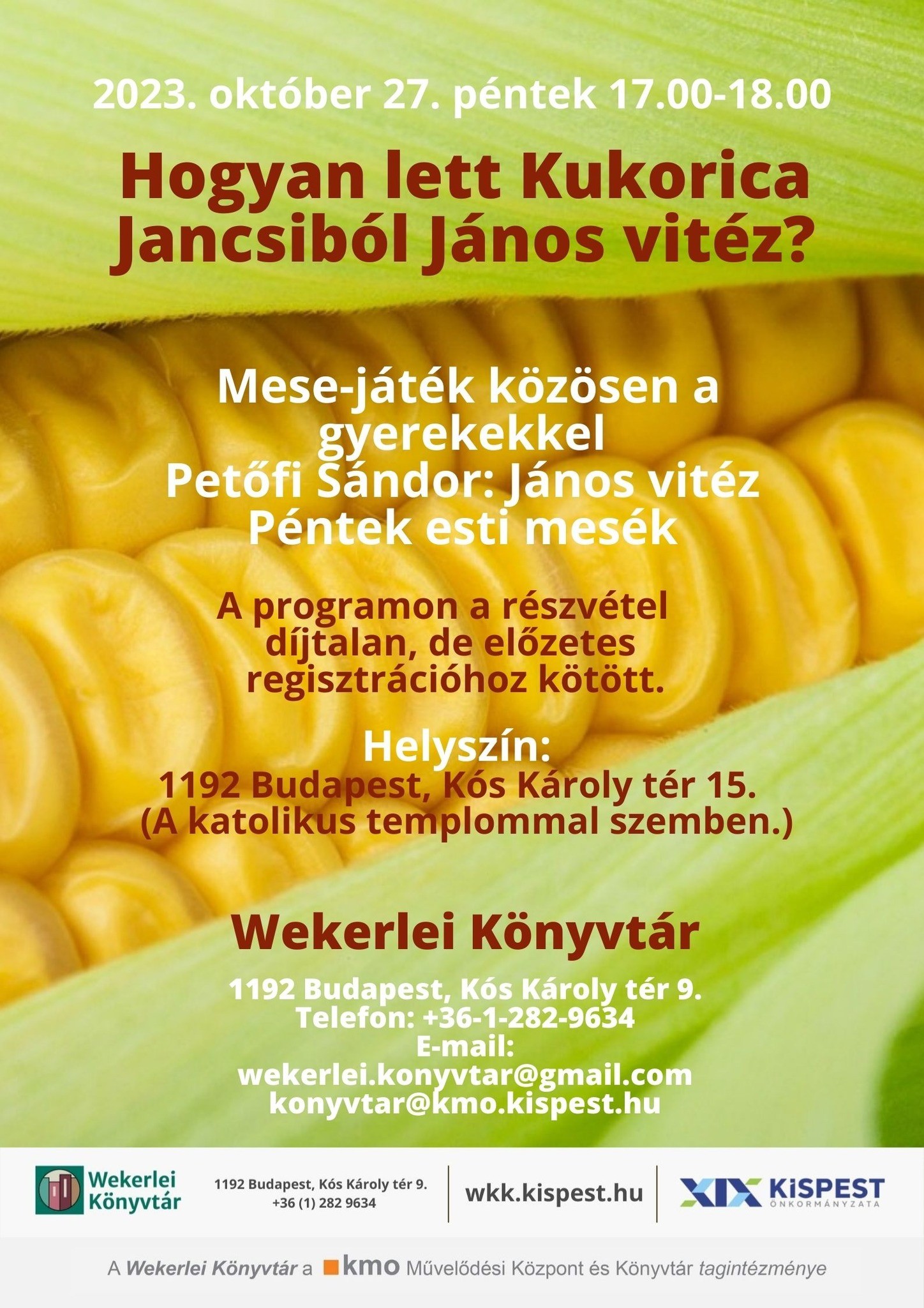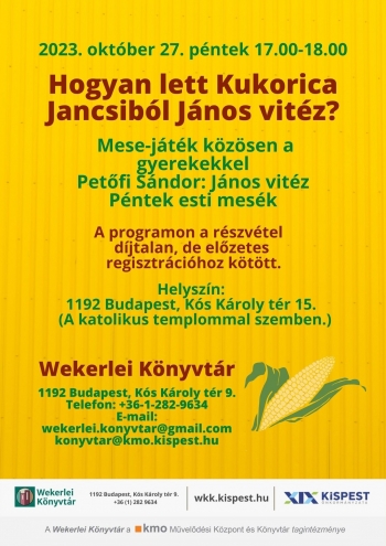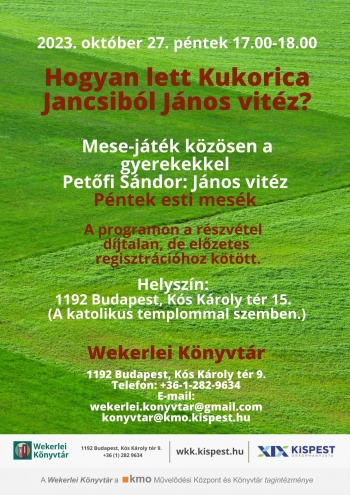 Címkék: Wekerlei Könyvtár, Péntek esti mesék, Petőfi Sándor János vitéz, Mese-játék közösen a gyerekekkel, Hogyan lett Kukorica Jancsiból János vitéz?