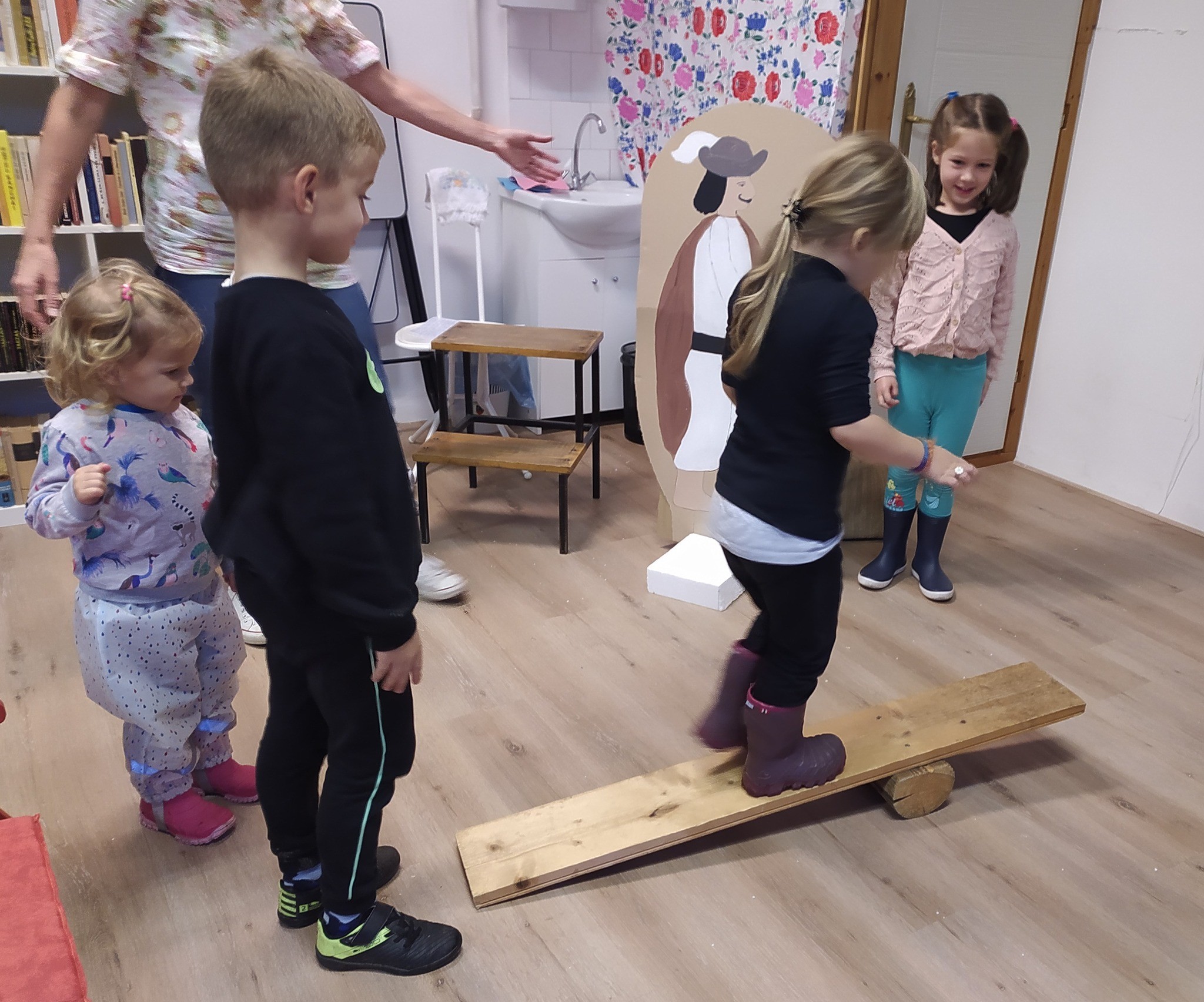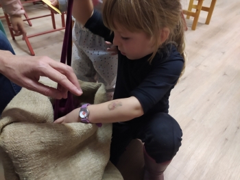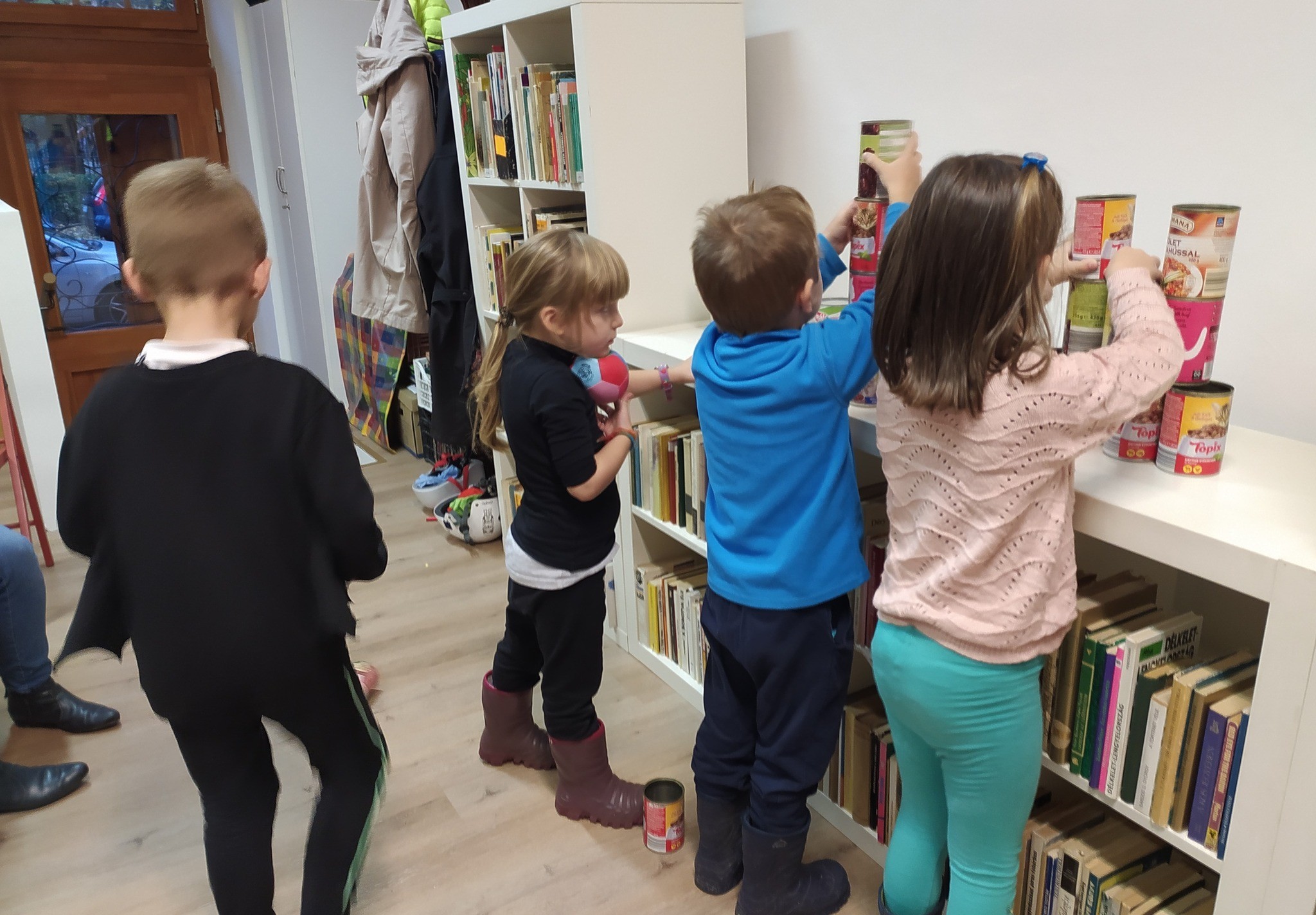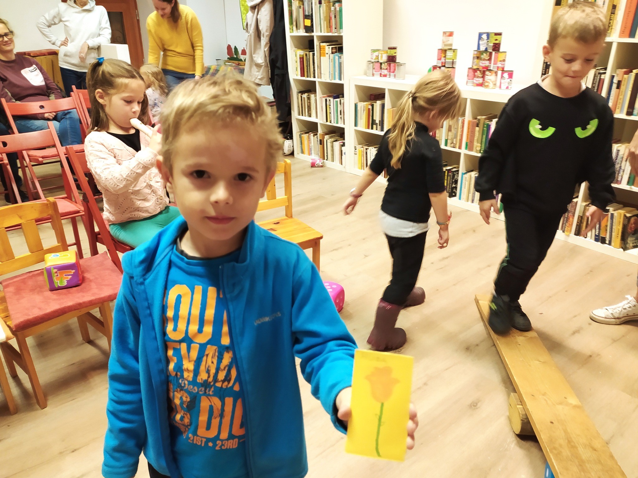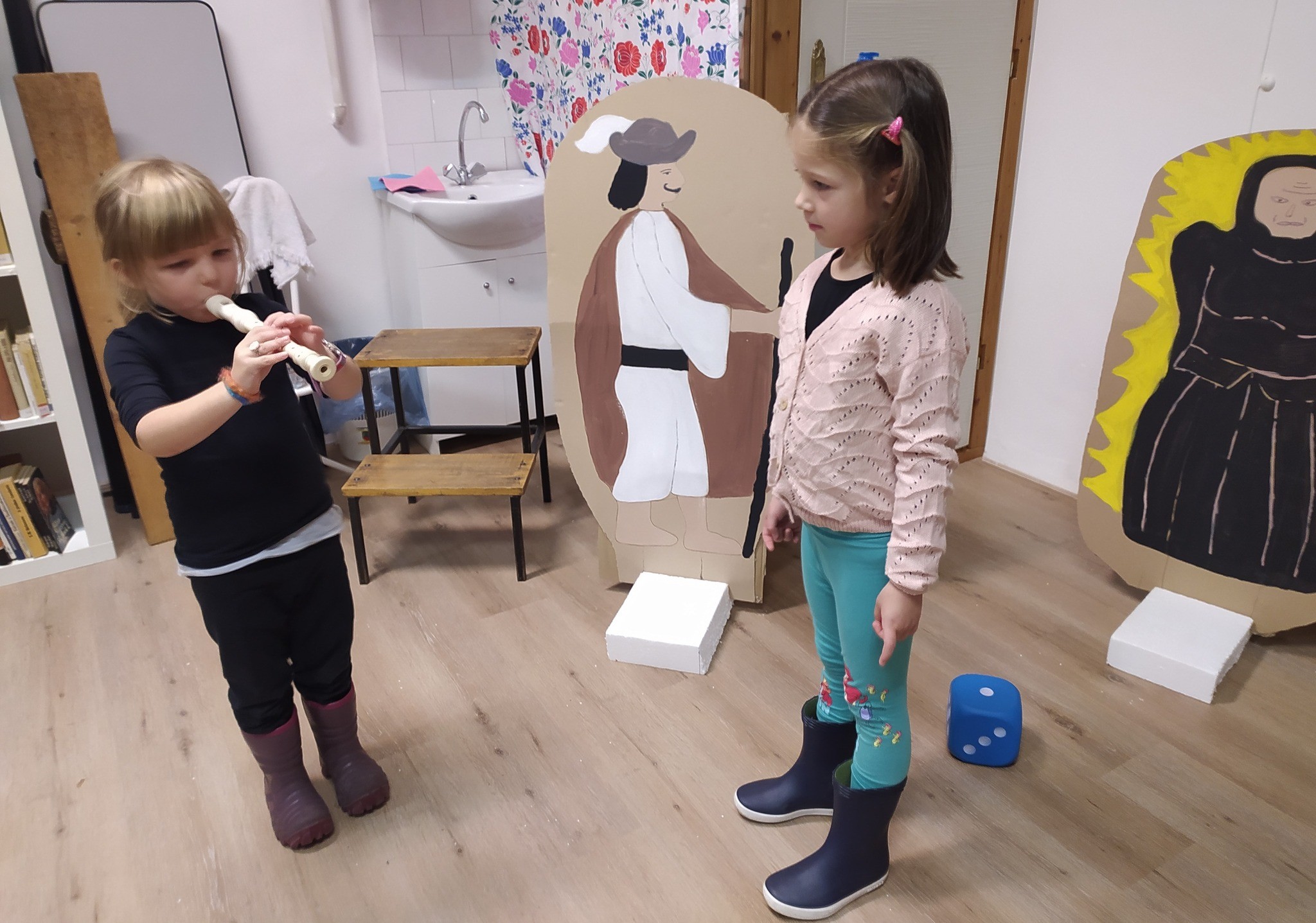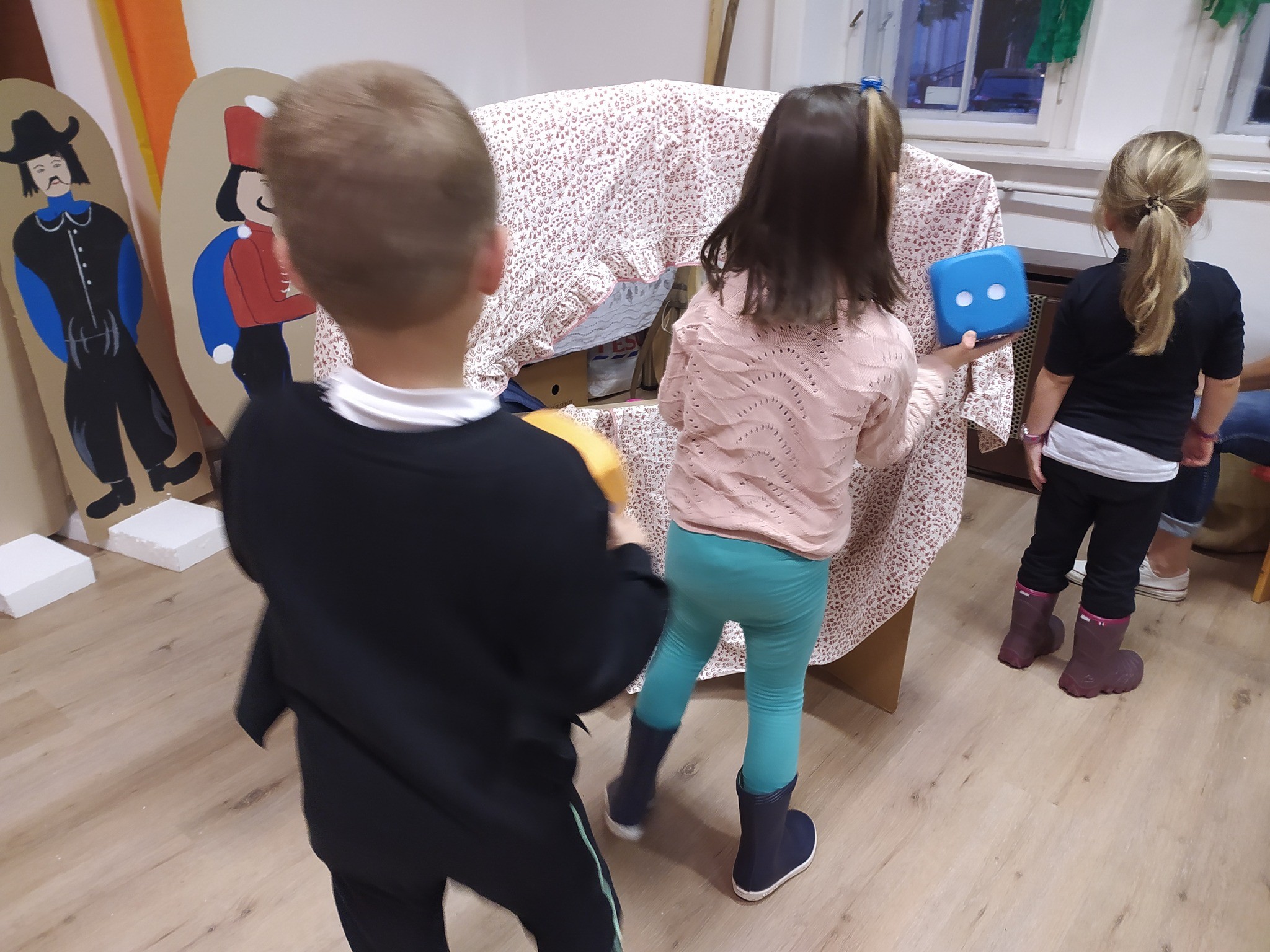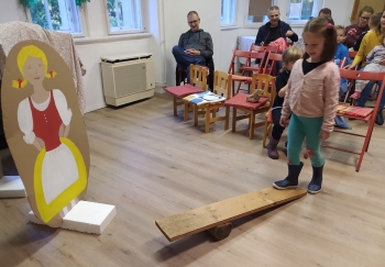 Petőfi Sándor János vitéz című meséje mai „köntösben” - amikor a gyerekek is szereplőkké válhattak. Mindenki átsétálhatott a pallóhídon, csatajelenetként labdákkal célozhattak doboztornyokra, felfedezhették a haramiák kincseszsákjának tartalmát, dobókockákkal segíthették János vitéz Tündérországba jutását, megnézhették az óriások királyának hatalmas evőeszközeit és kipróbálhatták Kukorica Jancsi varázsfurulyáját is.
