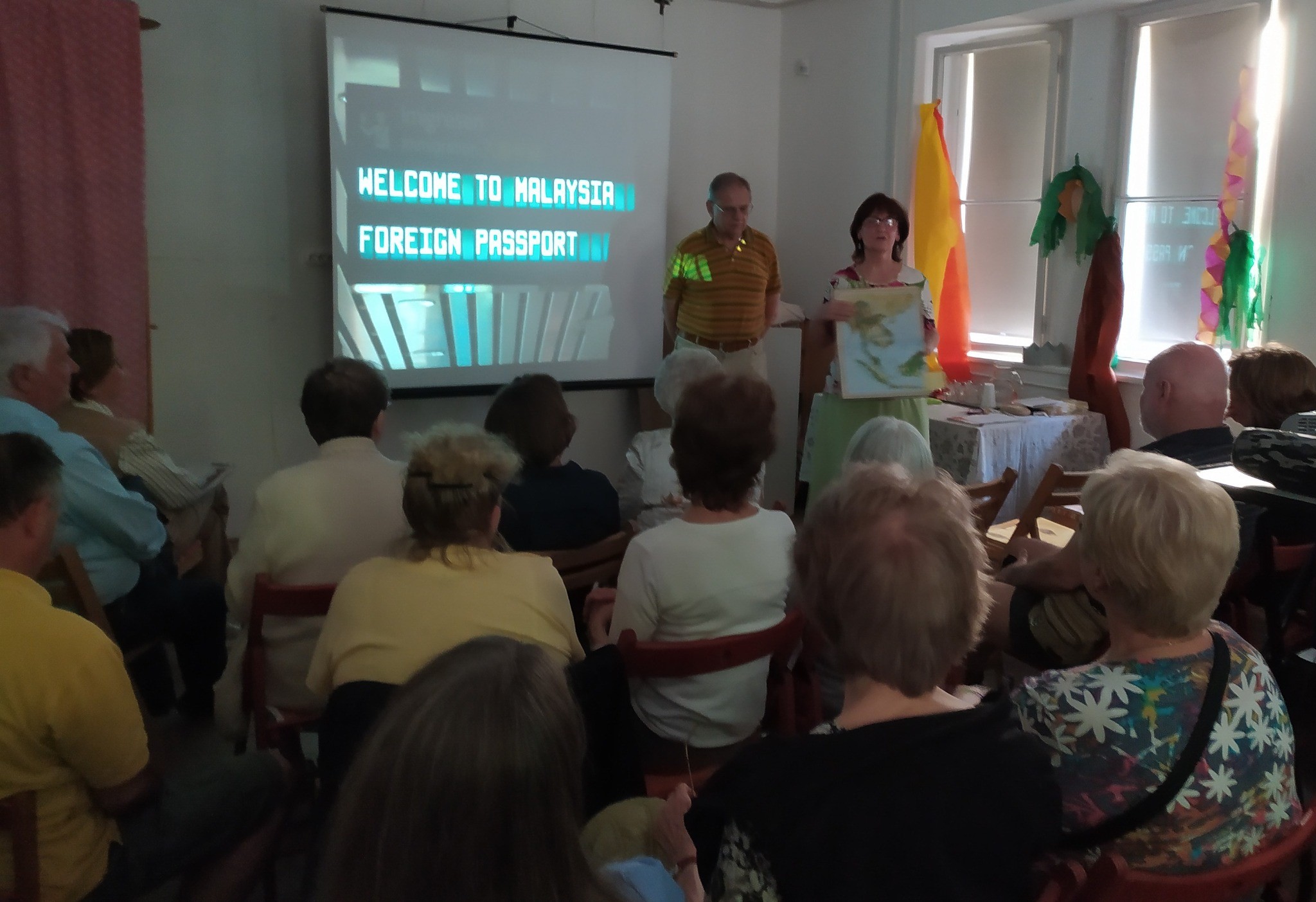 Az előadók utazásaik során közel 50 országban jártak, ezen az estén Malajziába kalauzoltak el bennünket. A különleges, vetített képes úti élménybeszámoló keretében bepillanthattunk a trópusi éghajlatú Malajziába, ahol a nappali csúcshőmérséklet egész évben általában 30-35 fok között mozog. Az ország fővárosa Kuala Lumpur, büszkesége a híres-nevezetes Petronas ikertorony. A fővároson kívül megismerkedhettünk két UNESCO világörökségi helyszínnel: Melaka kisvárossal, és a Penang szigeti George Townnal is az előadáson.