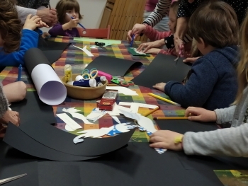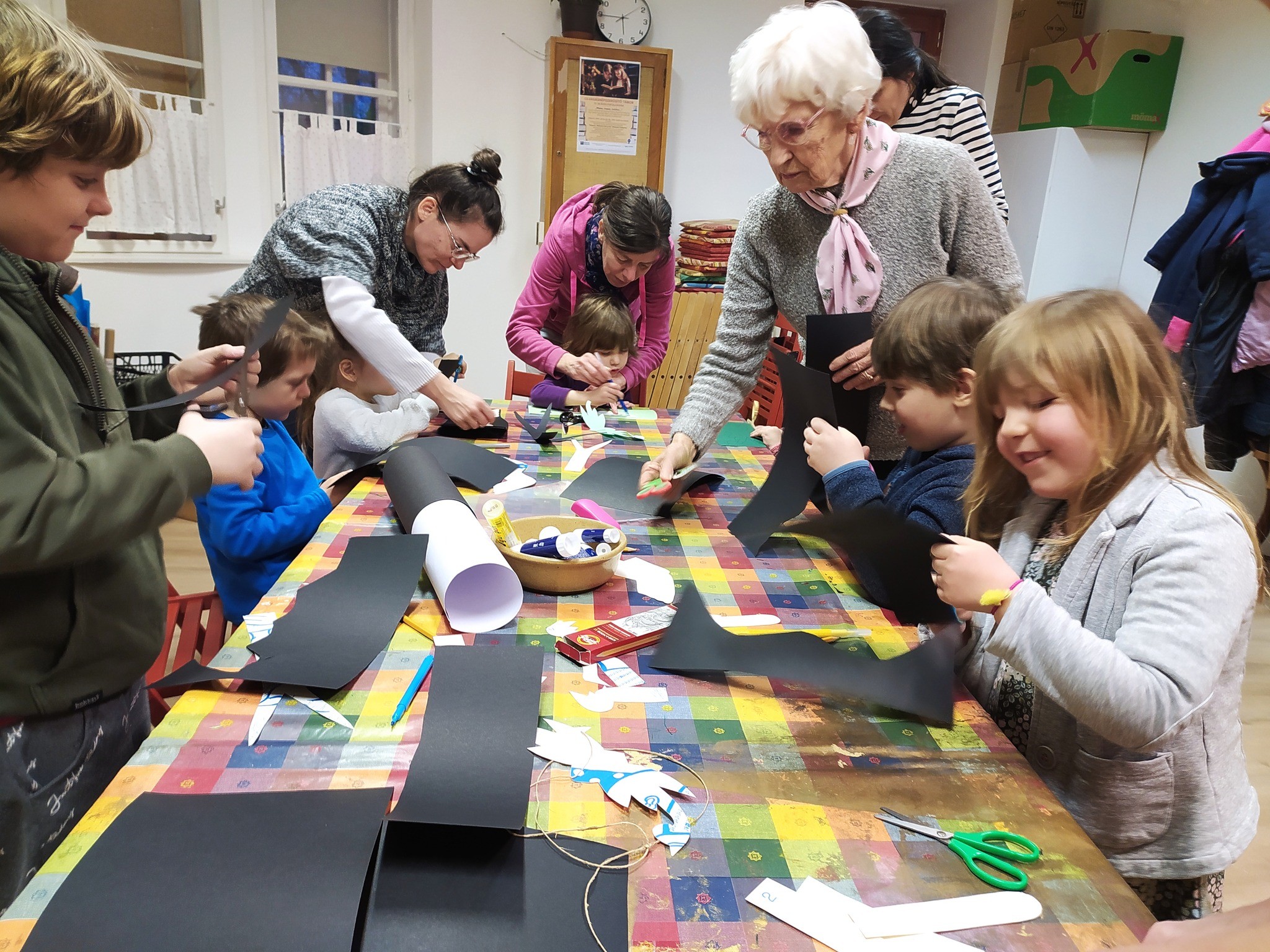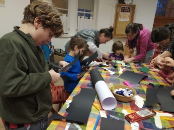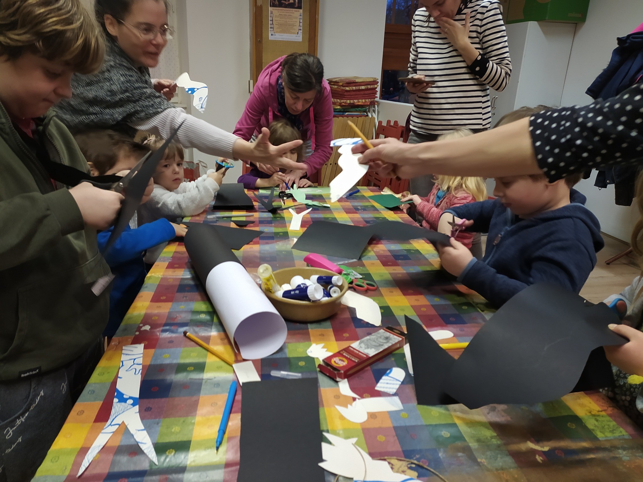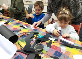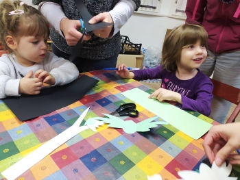 A közös kézműves foglalkozás témája is a tavaszvárás volt. Kedves fecskéket és tavaszi hóvirágokat készítettünk a gyerekekkel.