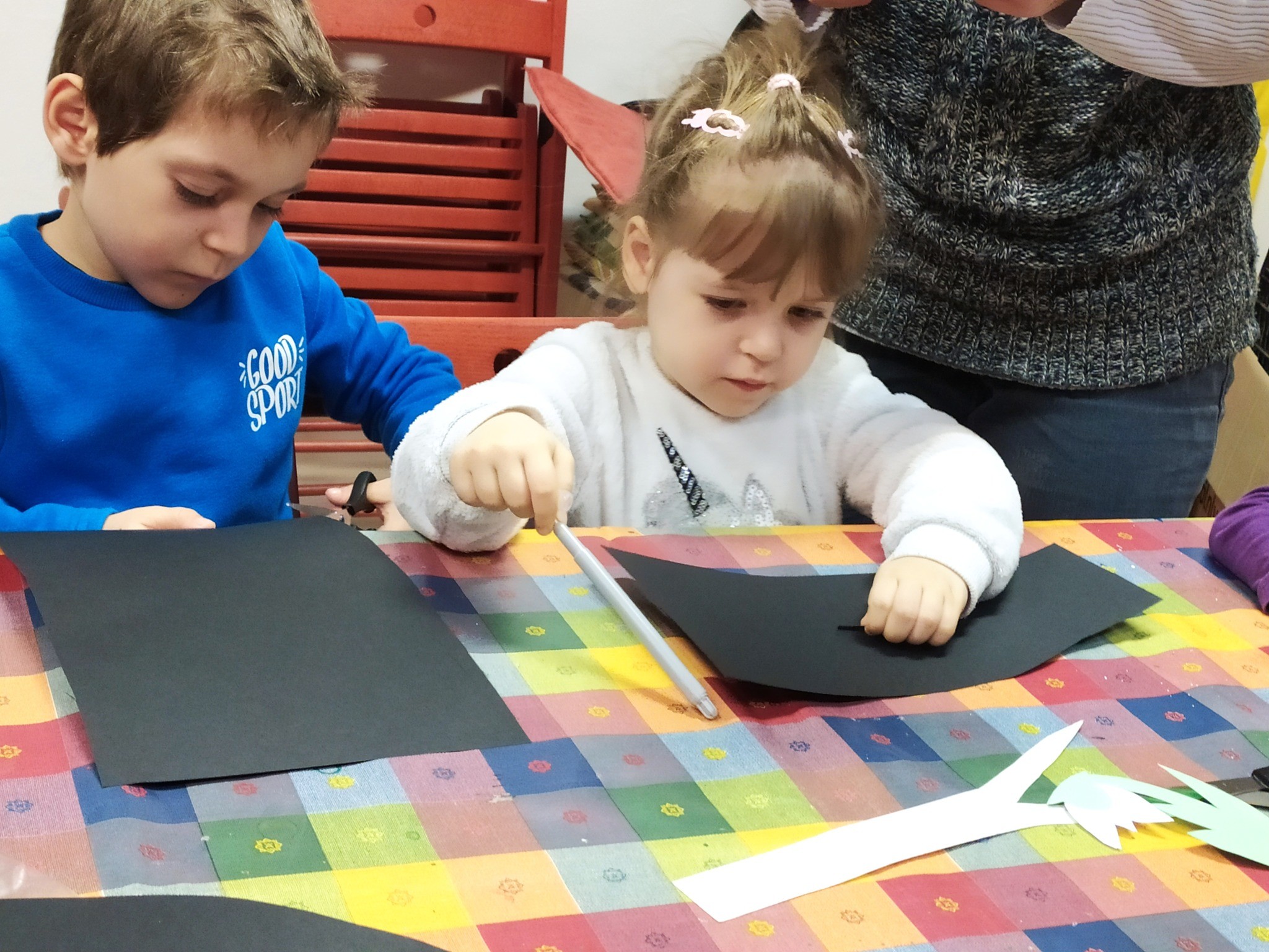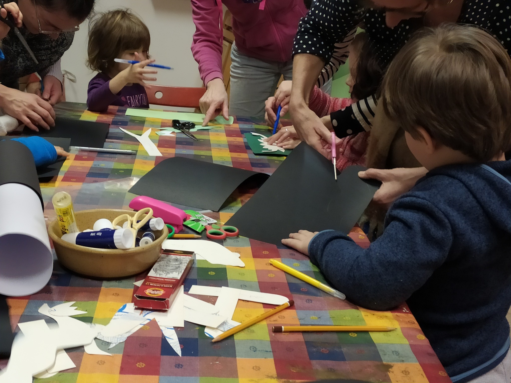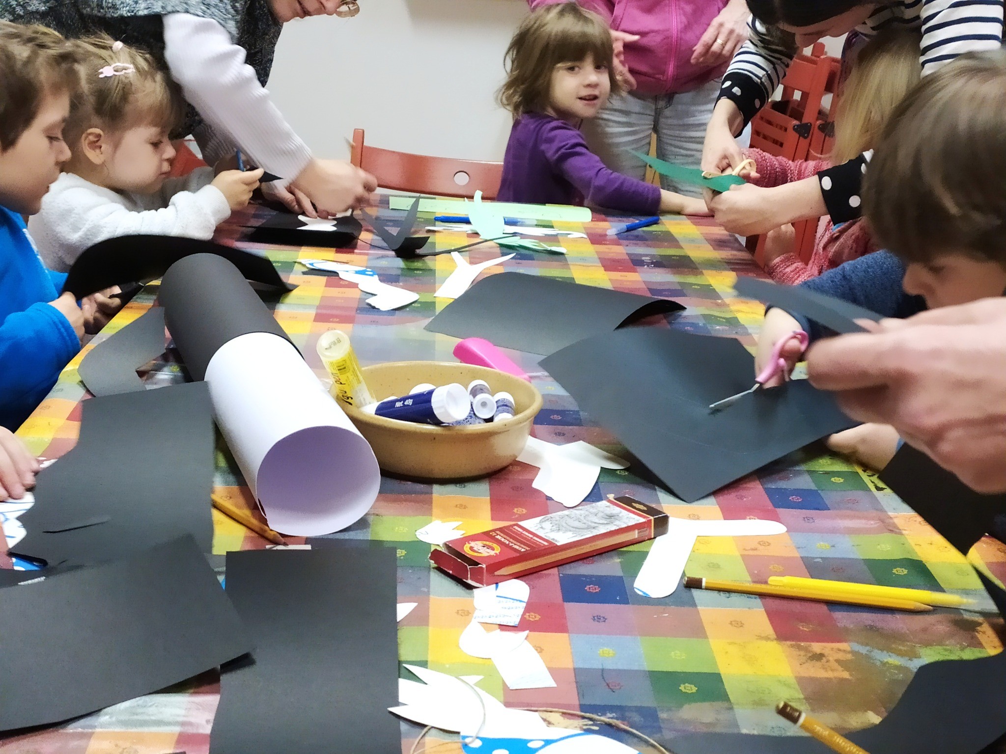 A közös kézműves foglalkozás témája is a tavaszvárás volt. Kedves fecskéket és tavaszi hóvirágokat készítettünk a gyerekekkel.