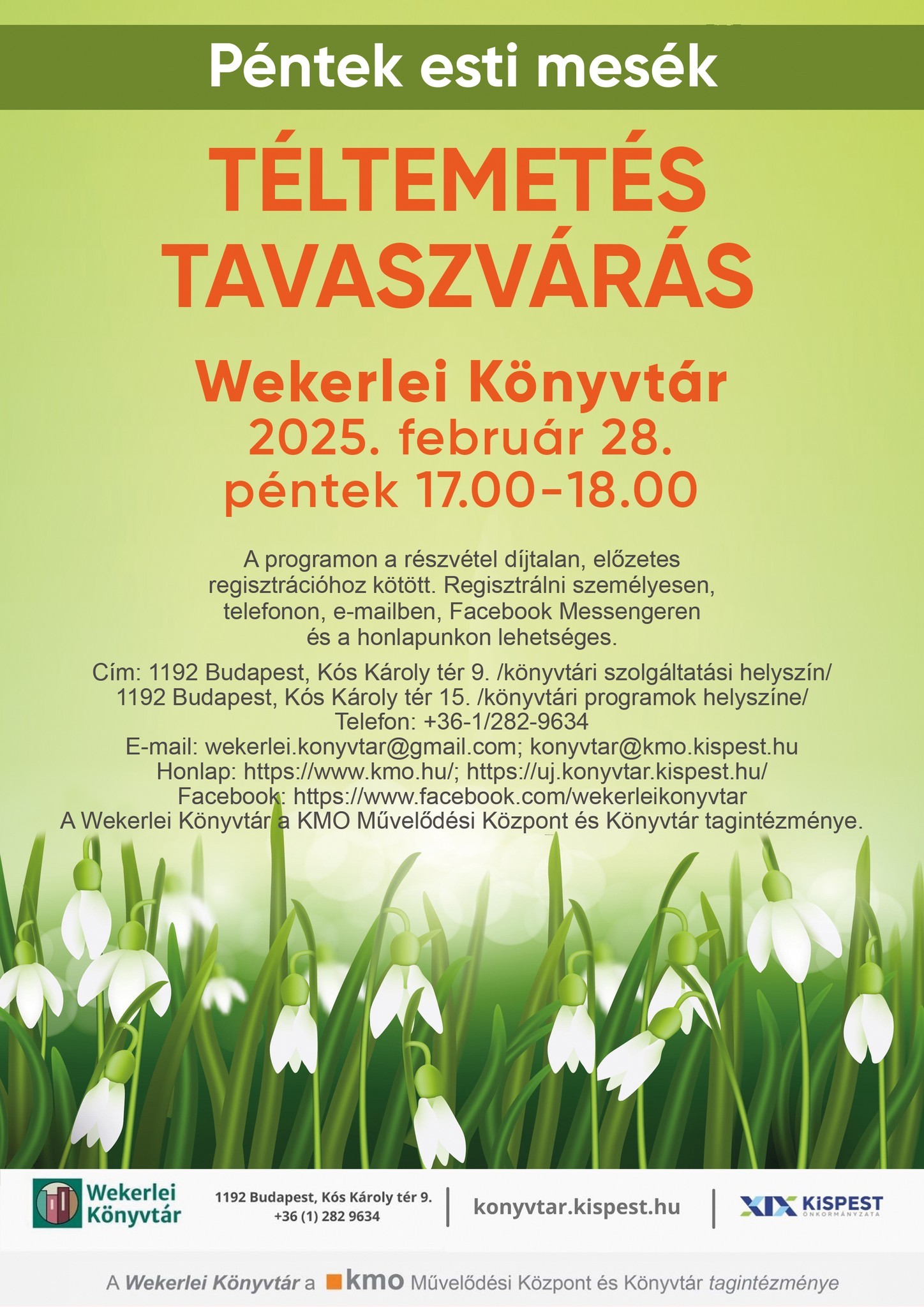 E-mail: konyvtar@kmo.kispest.hu; wekerlei.konyvtar@gmail.com