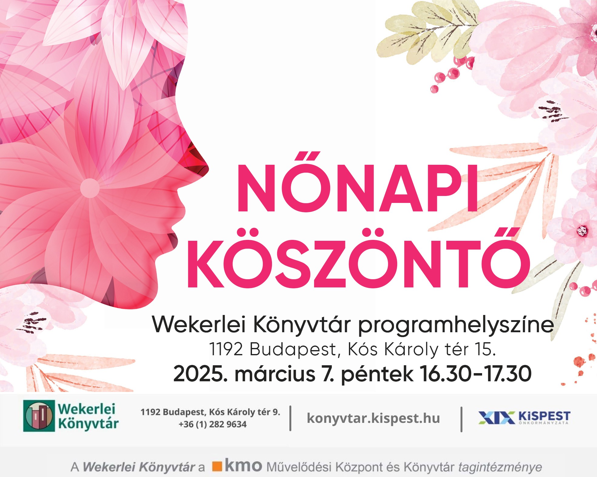 Cím: 1192 Budapest, Kós Károly tér 15. /könyvtári programok helyszíne/