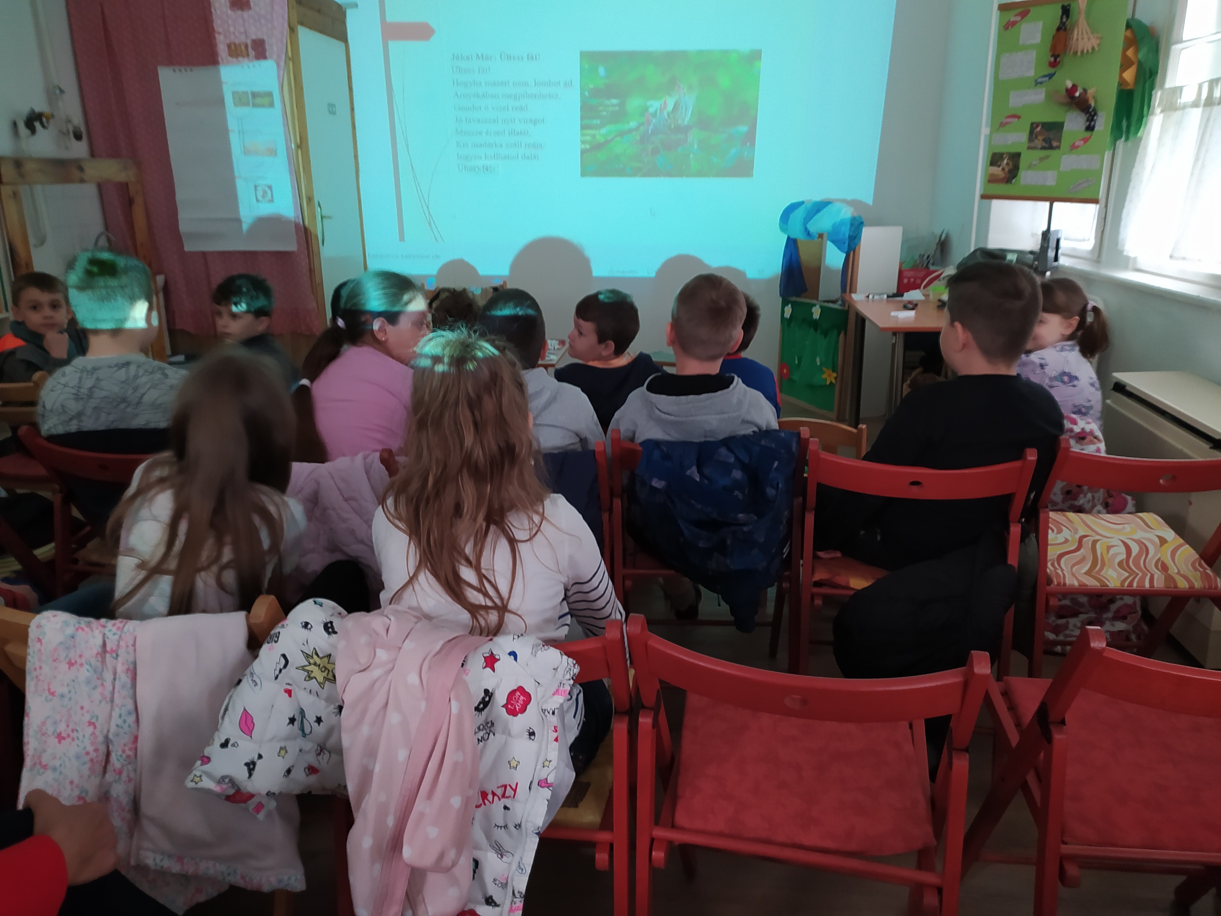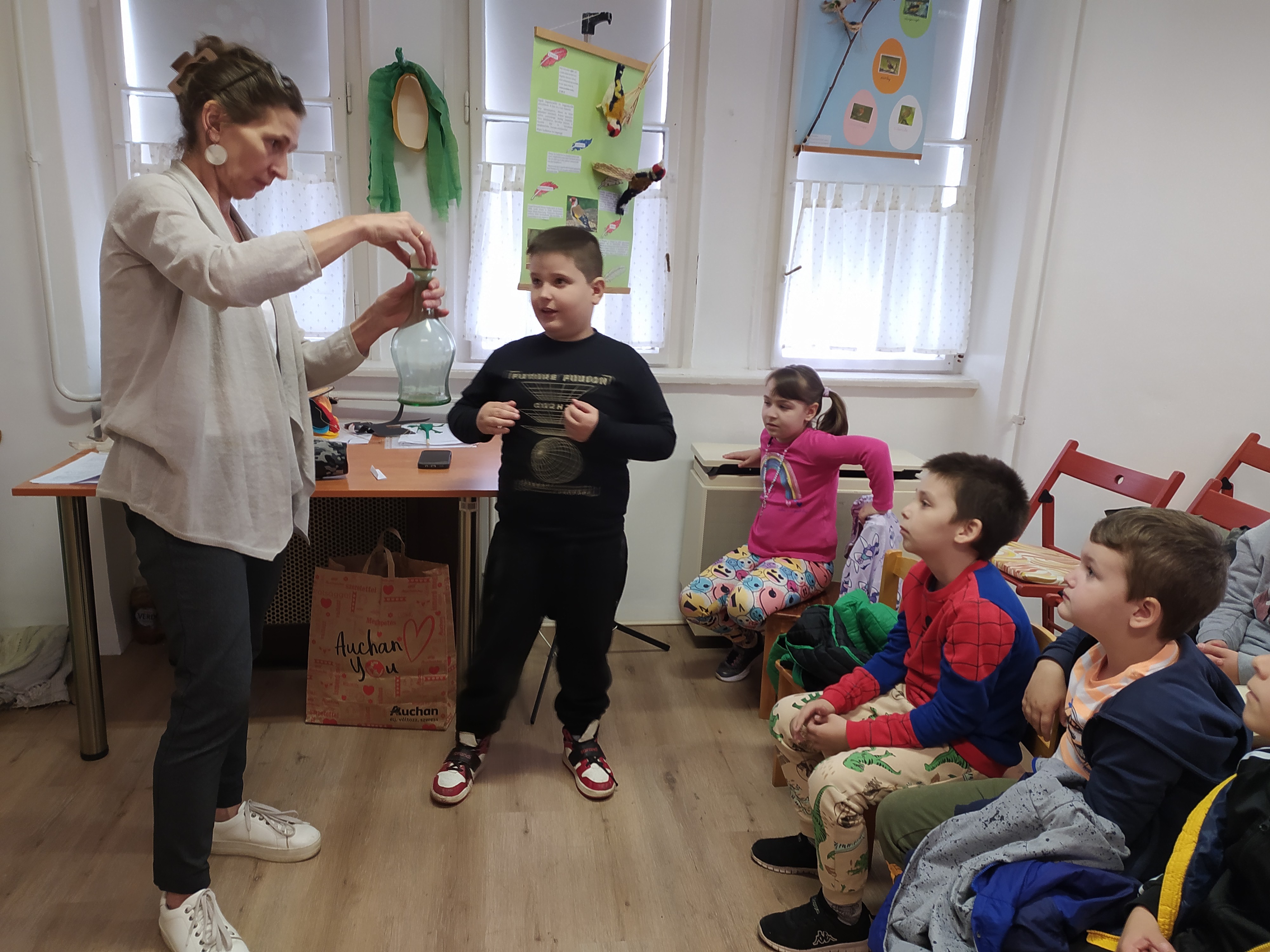 Az ünnepi foglalkozáson szó volt a madarak és fák életéről, megjelenésükről, táplálkozásukról, élőhelyükről, hasznukról és védelmükről is. Az év madaráról, a böjti récéről és az év fájáról, a korai juharról is beszélgettünk. A jó hangulatú délelőttön volt mese, közös verselés, „madaras” zenehallgatás és „tojásos” kísérlet a gyerekek aktív részvételével.