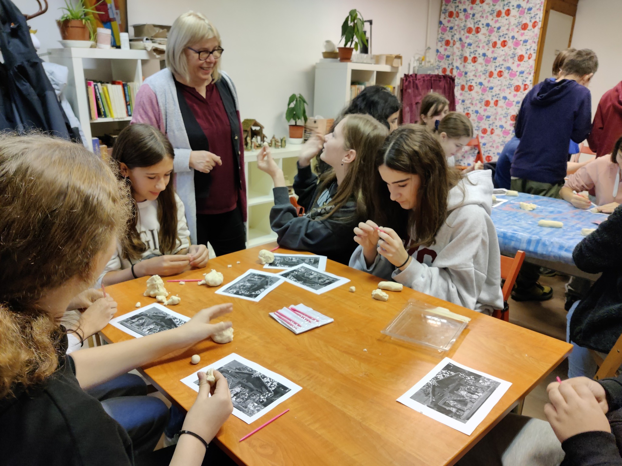 Emellett a gyerekek só-liszt gyurmából karácsonyi betlehemi figurákat készítettek.